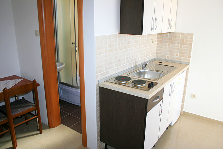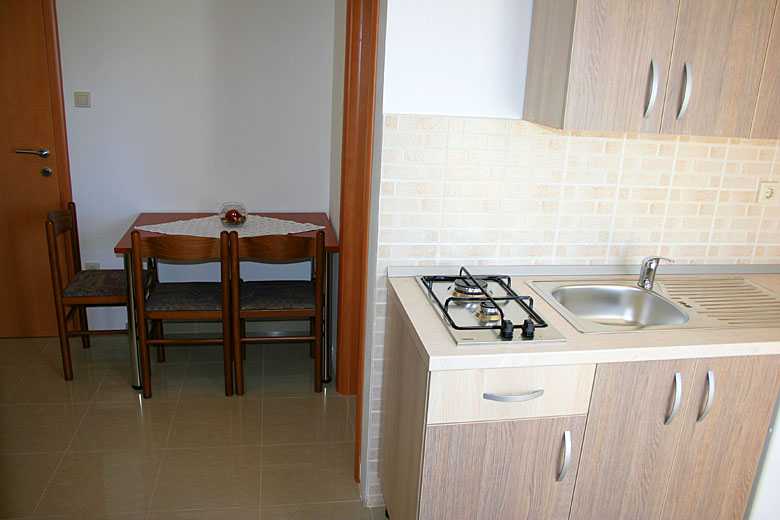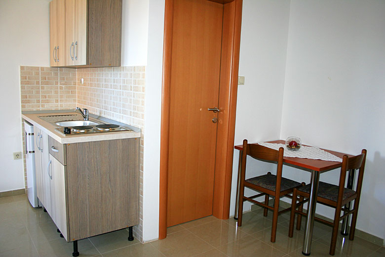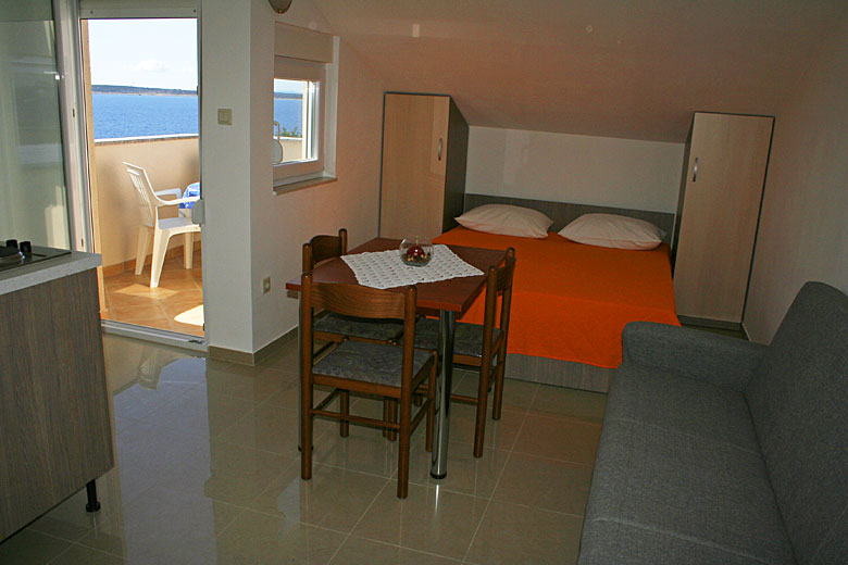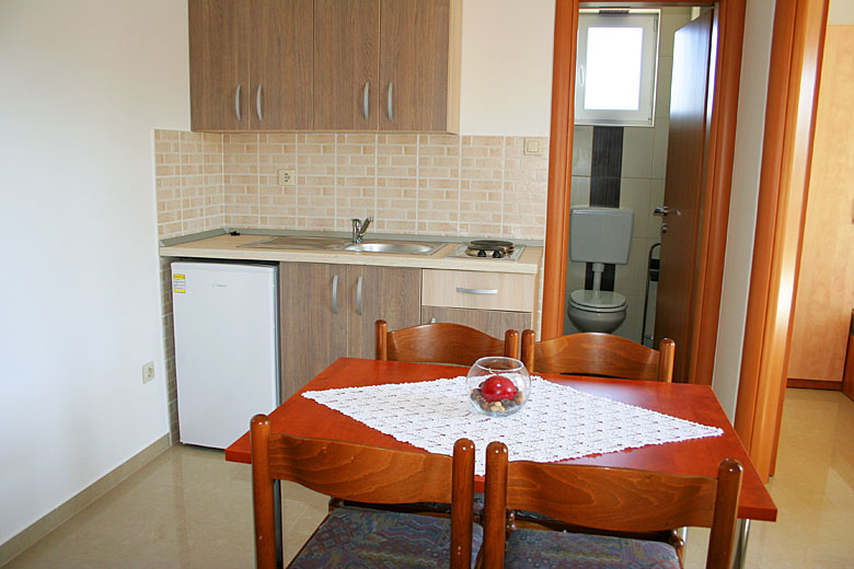 Potpuno nova kuća nalazi se u mirnom mjestu Mandre, 100 m od šljunčane plaže. Objekt sadrži 11 potpuno novo uređenih apartmana.