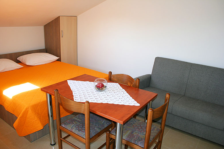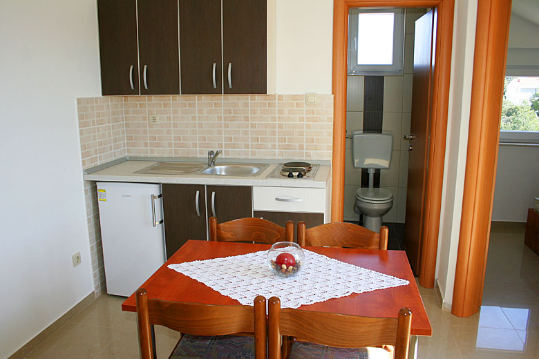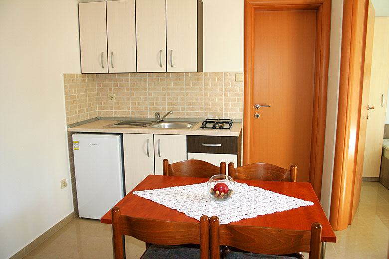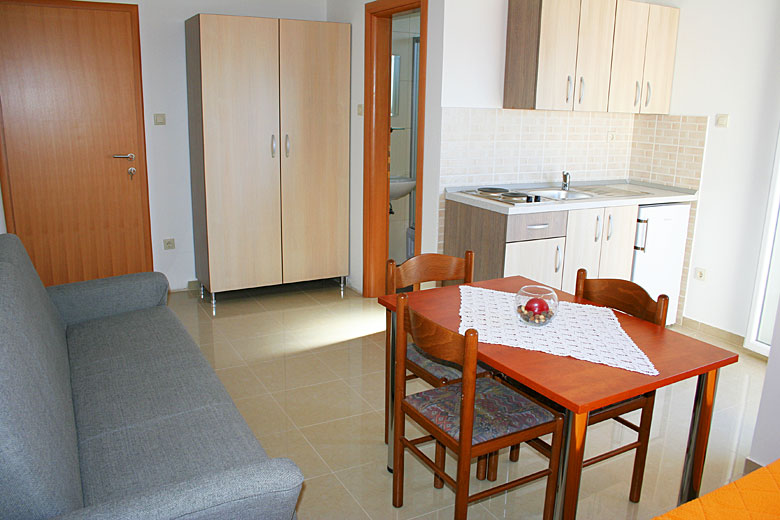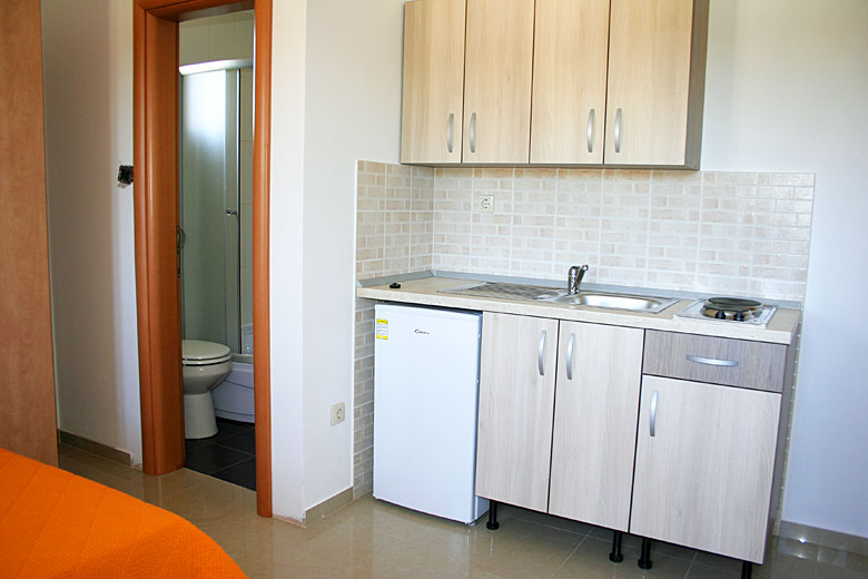 Potpuno nova kuća nalazi se u mirnom mjestu Mandre, 100 m od šljunčane plaže. Objekt sadrži 11 potpuno novo uređenih apartmana.